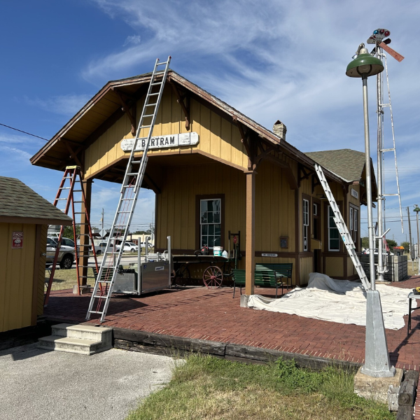 When it came time to repaint all the fascia and eave boards around the Depot roof, the Bertram Chamber of Commerce connected us with a local contractor: The G.O.A.T. Handyman Services, owned and operated by Bertram resident David Deutsch. Known for their commitment to community and willingness to support local nonprofits, David and his colleague Robert visited the Depot, evaluated the project, and offered a very reasonable quote.