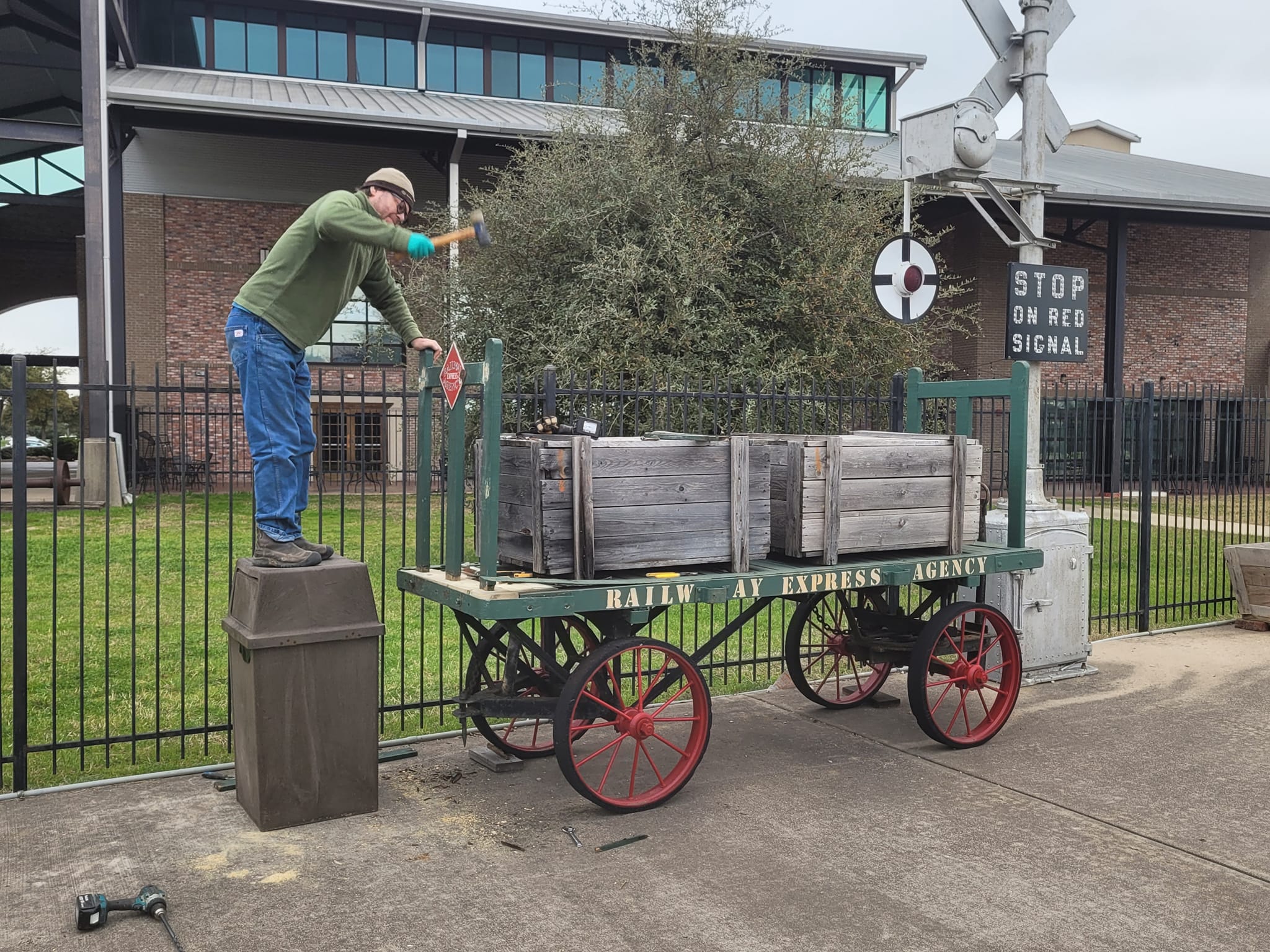 Not all yard work or restorations are monumental, but every task is essential. ASTA has numerous artifacts, buildings, and equipment that need repair. In this instance, Marc Opperman, one of our dedicated volunteer brakemen, is restoring the rotted wooden end of a vintage baggage cart on display at the ASTA boarding platform. Thank you, Marc, for your hard work and dedication!