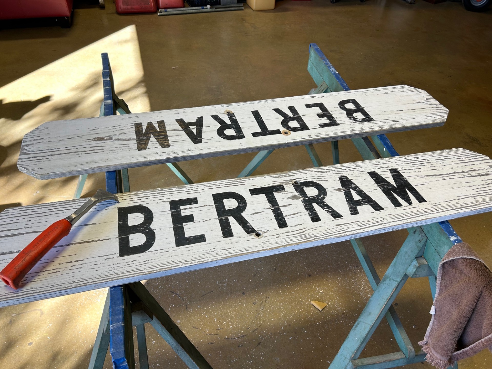 Railroads have always relied on signage to keep operations running smoothly, and that tradition continues today. At the Austin & Texas Central Railroad, we take pride in preserving authenticity—right down to the details. That’s why, whenever possible, we hand-letter our signs for that classic, time-honored look. In 2024, the Bertram track sign was due for some much-needed care, and the Sign Department got to work. The boards were carefully removed for restoration, kicking off a meticulous process of scraping, sanding, and repainting. The first coat of paint brought a fresh new base, while the second coat nearly obscured the original lettering. But with a steady hand and a keen eye, our skilled sign team carefully restored the original font, bringing history back to life. Now, after precise hand re-lettering, the sign is fully refreshed and proudly reinstalled—ready to guide the way once again! Check out the transformation in the gallery below.