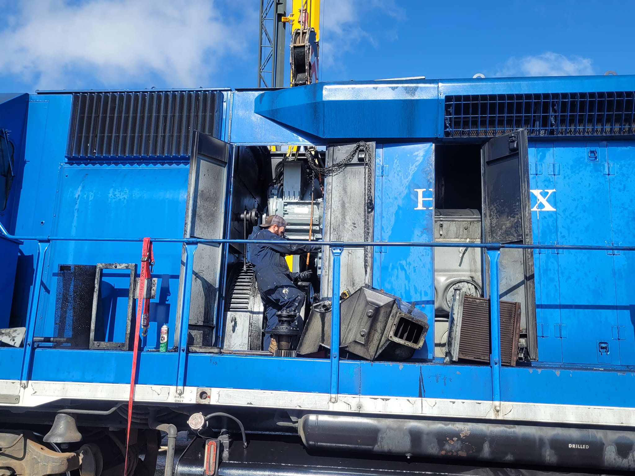 Turbo Replacement: Matt and his team replaced the Turbo on locomotive #3134 after a successful North Pole Flyer season. Thanks to the Team–and to Crocker Crane for the lift!