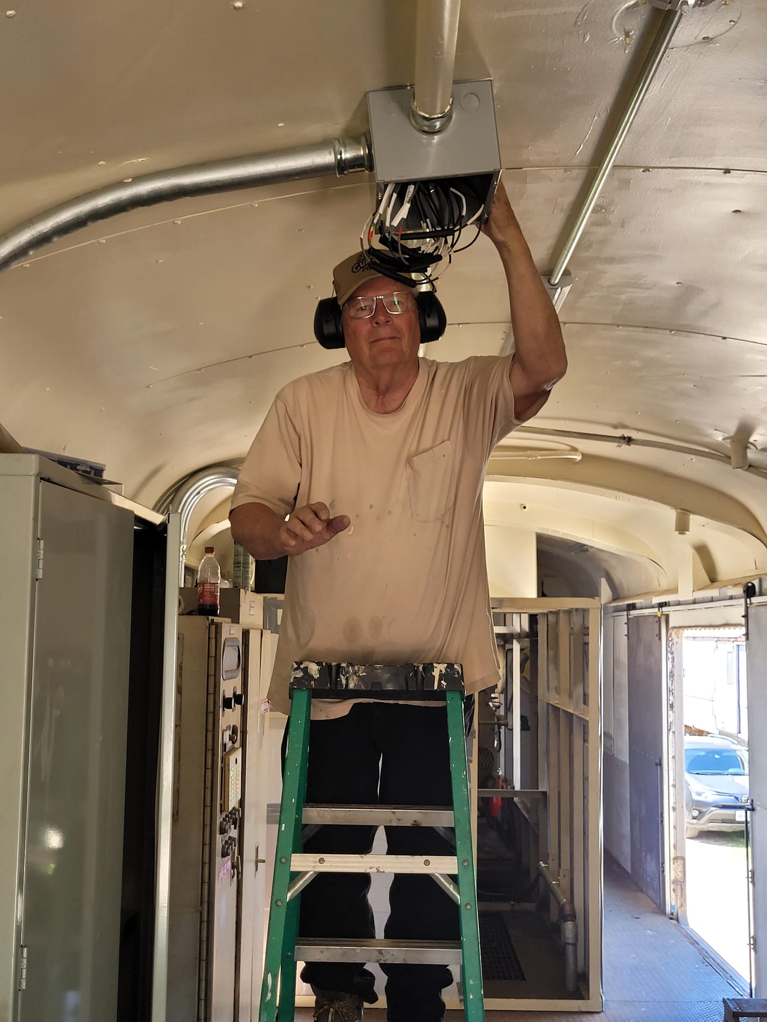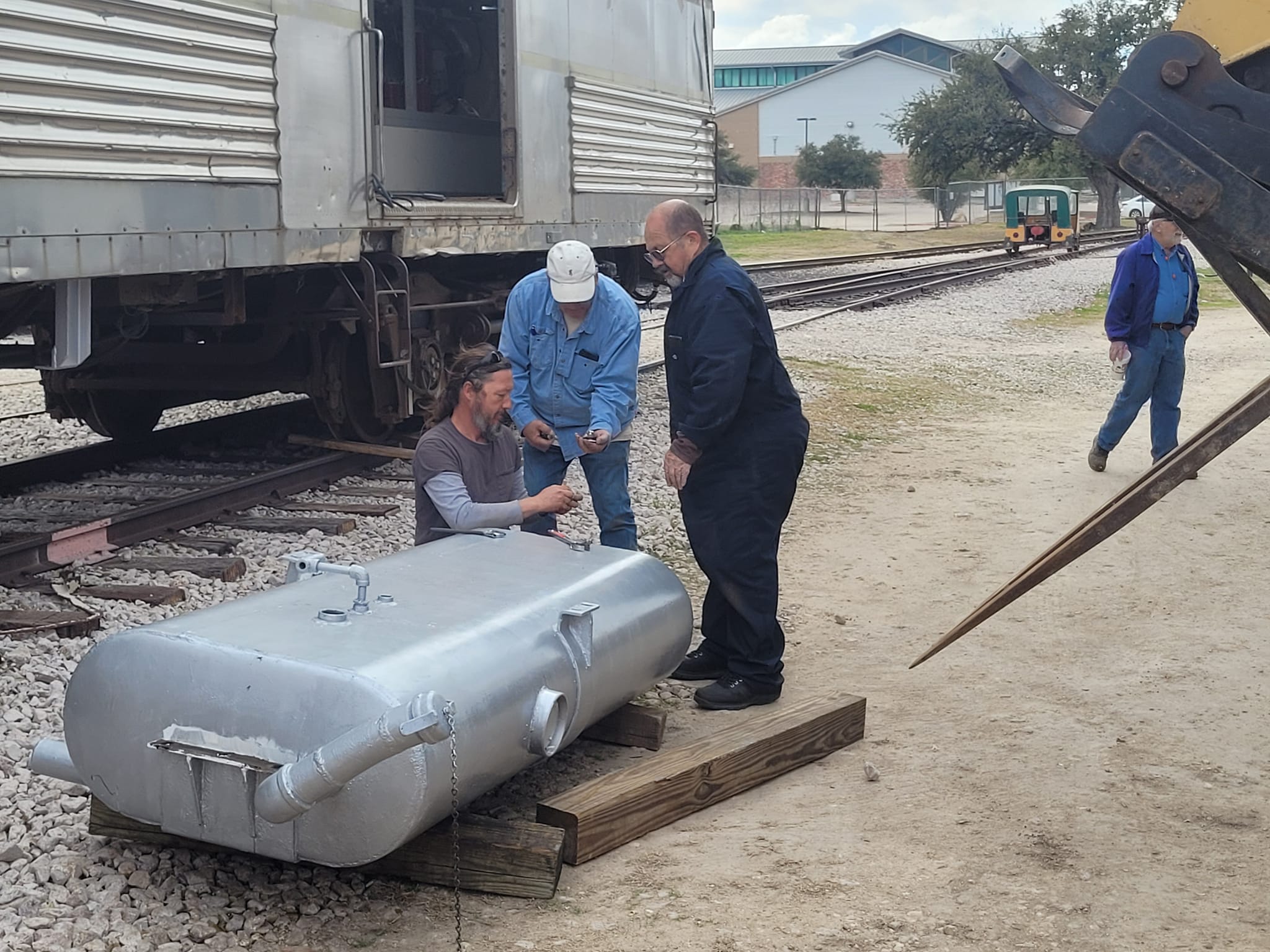 This month, we have a unique opportunity to address the debris floating on the surface of the power car’s fuel tank. The 400-gallon tanks typically provide about 40 hours of runtime, and one weekend of the North Pole Flyer consumes roughly 35 hours. To make the most of this timing, we ran the tank down until it just began picking up air, allowing us to tackle the debris effectively. Using spare parts, we built a surface-skimming fuel polisher to clean out the tank. We’ll let it run overnight, aiming to remove as much trash as possible and ensure smoother operation moving forward.