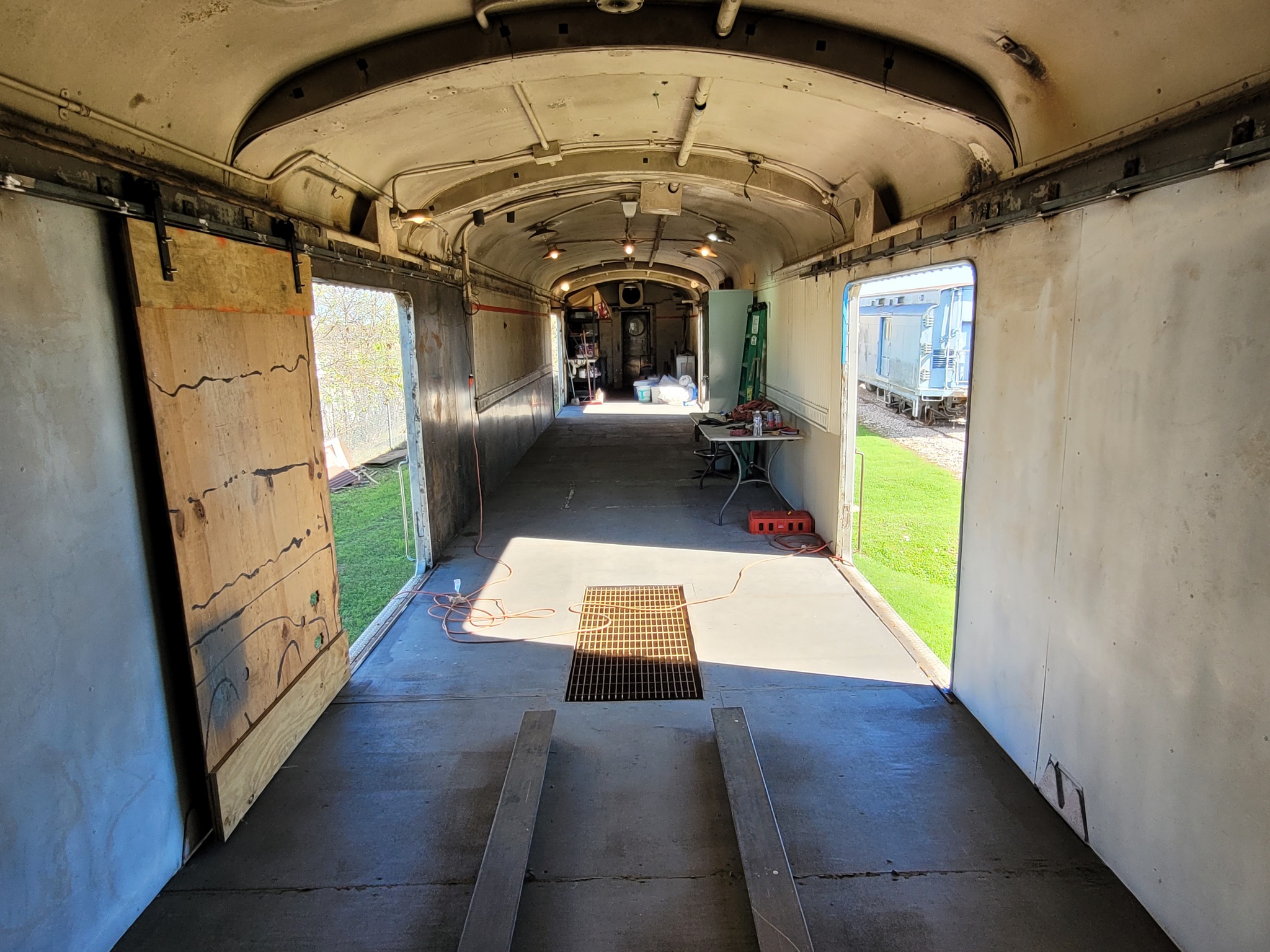 The Power Car radiator skirt, and the B end gate and door were installed this month. We can now lock all but the A end door from the inside. The A end door has an outside combination lock.