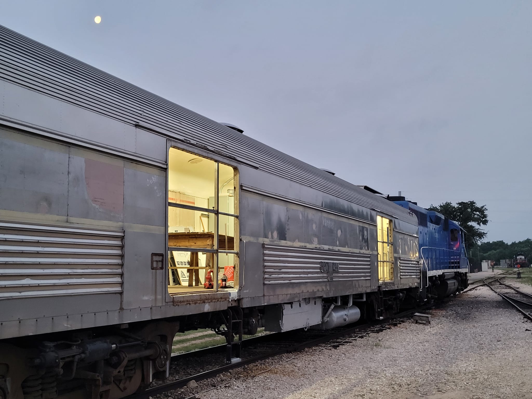 The Power Car is a former Amtrak 1165 Baggage Car that was built in 1953 by the Budd Company for the Santa Fe Railroad. It serves as the home for our 425-kilowatt Cummins diesel generator.