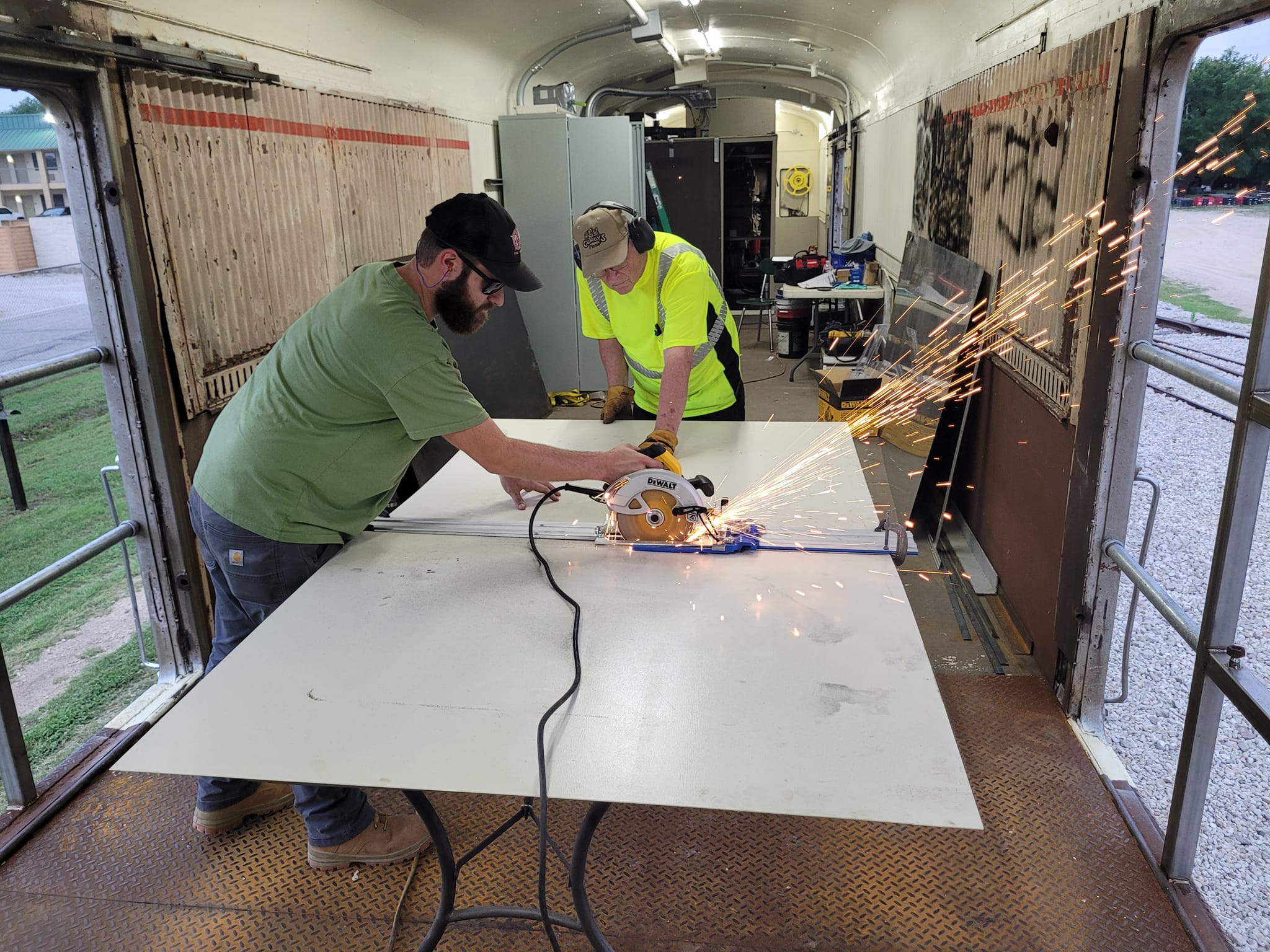 Mark and Chip fabricated and installed vital door supports on the Power Car radiator plenum!