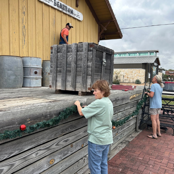 As we prepared for our annual North Pole Flyer weekends (24 magical Christmas-themed train rides that welcome nearly 10,000 guests over just three festive weekends) our dedicated volunteers brought the historic 1912 Bertram Depot to life. From decking the freight dock and porch columns with garland to installing Christmas trees, hanging wreaths, and lining the roof with twinkling lights, our Volunteer Decorating Team poured heart and skill into every detail. Even our Volunteer Operations Manager joined in, helping move the big sleigh from our warehouse to the depot with a cheerful “Ho, Ho, Ho!” Thank you to all of our hard-working volunteers who helped us prepare a place where families can create magical Christmas memories.